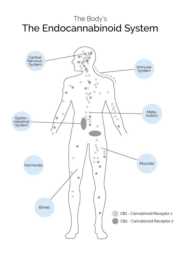 The ECS is made up of cannabinoid receptors, endocannabinoids and enzymes. Anandamide (ANA) and 2-Arachidonoylglycerol (2-AG) are the best-studied endocannabinoids produced in our body that help regulate and balance many processes in the body.